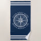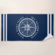 Name of your boat Nautical Compass Navy blue Beach Towel