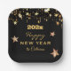 Ideal serving plates for your tablescape. Black background with bright gold stars, "Happy New Year" greeting, 202x, and ample room for your name(s) on these 7" square party paper plates. Change name and Year using the Template provided. Also available in 9" square. Sold in sets of 8 and printed on durable paper stock. See "About This Product" at side for more information.