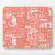 This mouse pad is orange and white with a text Word cloud that can be personalised with a name or word of your choice.