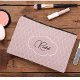 A trendy pale blush pink with white trellis pattern decorates this small accessory pouch. Change the elegant script name to make it yours using the simple Template provided. Ideal personalized gift for family, friends who travel, bridesmaids, teenagers, graduation and more. Constructed from a durable woven material with a zippered closure. Dimensions are 8.5"x6"...a larger pouch is available.