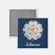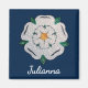 Intricate paper quilled Yorkshire White Rose symbol and white script name are featured on this 2" (5cm) square magnet with an Oxford Blue background. Easily change name to make it yours using the Template provided. Ideal as a small gift, company or business, party favours, Yorkshire Day, and more thoughtful ways of giving. Printed on 100% recycled paper. Covered with scratch and UV-resistant Mylar. See "About This Product" at side for more information. Paper quilled Yorkshire White Rose symbol, ©2021 Molly Smith in Wakefield, West Yorkshire, UK.