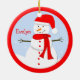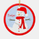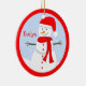 This name personalised Christmas snowman ornament features an adorable little snowman wearing a red Santa hat, red muffler and red buttons on a winter day with snow falling in the background. The snowman scene has a coordinating red border. You may personalise the name ornament with your name or the name of someone special. A great kids holiday gift, womens holiday gift or teen holiday gift for the Christmas season. Copyright ornamentsbyhenis