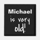Have fun with someone on his or her birthday or other occasion with this humourous, snarky and sarcastic refrigerator magnet that says their name and "is very Old". Great to give out at a party or to give the person celebrating the birthday. This magnet will bring fun and laughs. The words are in white text on black. You can customise to make it totally yours. Have fun with this word art saying and birthday gag.