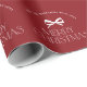 Trendy minimalist modern red white bow simple, elegant typography Merry Christmas name personalised holiday wrapping paper.