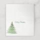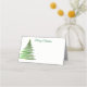 This folded name place card is shown in basic white with a festive holiday Christmas tree print.