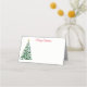 This folded name place card is shown in basic white with a festive holiday Christmas tree print.