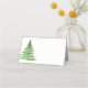 This folded name place card is shown in basic white with a festive holiday Christmas tree print.