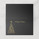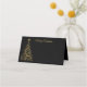 This folded name place card is shown in a black colour with a gold holiday Christmas tree graphic print.