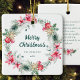 Commemorate the season with this square ceramic ornament showcasing a watercolor poinsettia wreath with “Merry Christmas” and your family name at the centre. The back offers space for a TG original holiday message, making it a cherished keepsake for your tree or a meaningful gift for loved ones.