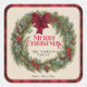 Name Red Buffalo Plaid Farmhouse Christmas Wreath Square Sticker