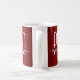 A PhD coffee mug with a red and white colour scheme. Simply customise the name, add this mug to your cart, and enjoy your next cup of coffee.