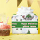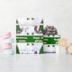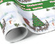Christmas series Fun Christmas wrapping paper - with room for the giftee's name. Featuring a jolly Santa arriving from the skies on his reindeer sleigh, filled to the brim with toys and gifts for good children. He is setting down around a Christmas tree, decorated with lights and baubles on a background of fir trees and snowdrifts - and what Christmas scene would be complete without a snowman? Perfect for wrapping those Christmas gifts for someone very special!