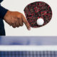 A pattern of names of different reddish font styles stamped over the entire surface... a nice and creative typography idea for a table tennis player
