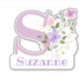 Personalise any item with a Name and Initial with Floral Design Cut-Out Sticker. Example name is Suzanne.
