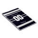 Black, white, and grey. Personalised with name,#, team, sports fan Team notebook. Design by Sandy Closs.