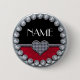 Beautifull detailed name template badge with a silver and diamonds decorated edge and heart. The name is of course customisable. A ideal badge for a wedding, but the design fits anny kind of glossy party.