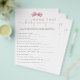 Keep guests entertained with this “Name That Baby Song” baby shower game sheet—a fun, interactive activity where guests guess popular songs with the word “baby” in the title! Styled in soft pink, it's perfect for a girl’s baby shower, especially when paired with other elegant or coquette-themed party decor.