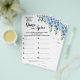 Blue Flowers Name that Spice Bridal Shower English and Spanish version game included (front and back). Change wording to the design for English and Spanish versions. For additional customization (change number of spices and any other wording, font color, font style ), click on personalize, scroll down and click on link "click to customize further".