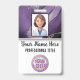 Stand out professionally with this customisable employee ID badge, designed for nurses, doctors, and medical staff. The front features a moody purple and gold marbled alcohol ink design with a photo frame, name and title in elegant script and block fonts, plus space for your business logo. The back includes a QR or barcode template, return address, and matching marble background. Perfect for travelling nurses or healthcare pros with style.