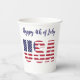 Name, USA Flag Stencil Happy 4th 8oz or 12oz Party Paper Cups