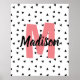 Personalised name with monogram typography art print poster. Pink, black and white. Great for triangle nursery decor.