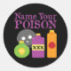 This funny "Name Your Poison" cartoon illustration features a green bottle with a yellow skull on it, a purple moonshine bottle with x's and an orange bottle with a red bomb on it! This cool drinking humour design is the perfect gift to buy for a bartender who lives life on the dark side or anyone who likes their drinks to be fun and dangerous!