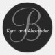 Wedding Invitation Envelope Seal with Initial, monogram, letter and bride and groom names. Design by Elke Clarke ©2008. Personalise with your bride and groom names, monogram initial and wedding colours. Names and Initial Monogram Sticker Black and Grey Customisable
