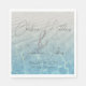 This romantic and elegant event or wedding napkin features the names of the couple printed across a sandy beach. The bottom portion has a water pattern that gently crosses over the white sand.