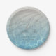 This romantic and elegant event or wedding plate features the names of the couple printed across a sandy beach. The bottom portion has a water pattern that gently crosses over the white sand.