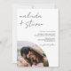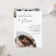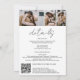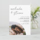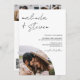 A modern, chic and elegant wedding invitation with arch, script names with a hand written calligraphy in black on white with an arched photo and another 3 photos at the back. A modern all in one wedding invitation with rsvp, details , accommodations and qr code. All the text, names and background colours are customisable. A simple and minimalist invitation.