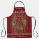 "Nana Christmas Red Cardinals Wreath Gold Glitter Apron, personalised with your name or message!" Created from oil pastel artwork by internationally licensed artist and designer, Audrey Jeanne Roberts. This pair of Cardinal birds rest on a garland of gathered forest evergreen foliage greenery with a Red and gold bow. A large central wreath sits over the top of thin gold glitter stripes for a festive, elegant classic Christmas decor. Copyright.