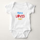 Nana Loves Me T-shirts, cards, stickers, bodysuits bags, and more with colourful red, yellow, and blue text and heart design. These Nana Loves me apparel and gift items will make nana smile!