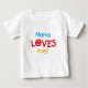 Nana Loves Me T-shirts, cards, stickers, bodysuits bags, and more with colourful red, yellow, and blue text and heart design. These Nana Loves me apparel and gift items will make nana smile!
