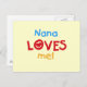 Nana Loves Me T-shirts, cards, stickers, bodysuits bags, and more with colourful red, yellow, and blue text and heart design. These Nana Loves me apparel and gift items will make nana smile!