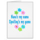 A Nana can't help it, so you might as well show the world your love with this colourful flower design and the words Nana's my name, Spoiling's my game.