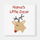 A reindeer with a red nose and red text that reads "Nana's Little Dear" on customisable tote bags, T-shirts, and more.