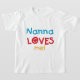 Nanna Loves Me T-shirts, cards, stickers, bodysuits bags, and more with colourful red, yellow, and blue text and heart design. These Nanna Loves me apparel and gift items will make nanna smile!