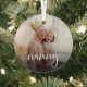 Create a sweet gift for a special grandmother with this beautiful custom ornament. "Nanny" appears as an elegant white script overlay on your favourite photo of grandma and her grandchild or grandchildren.