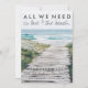 Fully customisable Nantucket white sand beach with wooden boardwalk wedding announcement and reception invitation featuring the message "All you need is love & the beach." Can be customised with your tropical beach wedding location, names and wedding date. Reception details are printed on the reverse side. To further customise, choose the customise it button where you can change the font styles, size and ink colour.