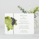 Wedding invitation shown in a classic but fresh look layout in colours of olive green and white with olive green text in script with a art print of grapes. Perfect for the couple who plans to get married in the napa valley area or any winery setting. Customise this invitation and change the appropriate text to yours.