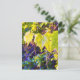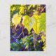 Sunlit grape leaves and delicately curling tendrils make a striking image against a background palette of blue, purple, pink and green.