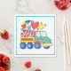 Colourful napkin with a truck filled with hugs and kisses and hearts for a sweet valentine theme party.