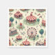 This is an amusement park pattern napkin with images of a merry-go-round, a Ferris wheel, and a balloon.