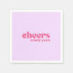 A simple, modern style drawing inspiration from cool retro lettering and mid-century minimalism. Pastel purple background with bright pink lettering, "cheers to forty years".