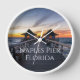 This is the beautiful pier off the coastal town of Naples, Florida. Florida's paradise coast and a popular destination. Historic pier known for fishing, bird-watching, dolphin-spotting & scenic sunset views. Personalised wall clock in trendy white.