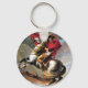 Napoleon Crossing the Alps key chain. Oil painting on canvas from 1800. French artist Jacques-Louis David’s Napoleon Crossing the Alps is the most famous depiction of the French general and emperor. The work depicts Napoleon riding a white horse on its hind legs with his red cape flowing about him and his right hand pointed forward toward victory. The piece was painted five different times with differing tones and brightness. This version is the Belevedere issue from 1800 and features the darkest reds and blues. A great gift for fans of Jacques-Louis David, Napoleon, French history, and French art.