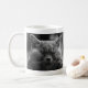 Whether your enjoying a coffee, tea, or another pick-me-up, this grey cat will chill with you every time.