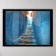 Cool perspective and angle. An old world narrow staircase in Morocco. The walls and stairway are painted a lovely shade of vivid blue giving this passageway an exotic flair.