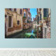 Painting of narrow canal with old colorful houses in Venice, Italy. Traditional gondola in Venetian water canal. Narrow canal street with colorful buildings and boats in Venice