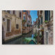Painting of narrow canal with old colorful houses in Venice, Italy. Traditional gondola in Venetian water canal. Narrow canal street with colorful buildings and boats in Venice.